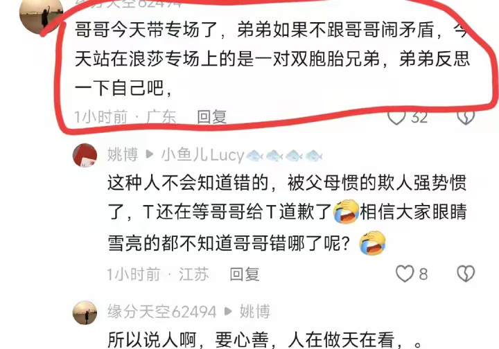 与哥哥直播的和煦酿成对比,弟弟账号虽没发新动态,却忙得不行开交——留言区炸了!网友们涌进去,为朱进鸣不屈,各式留言刷屏。